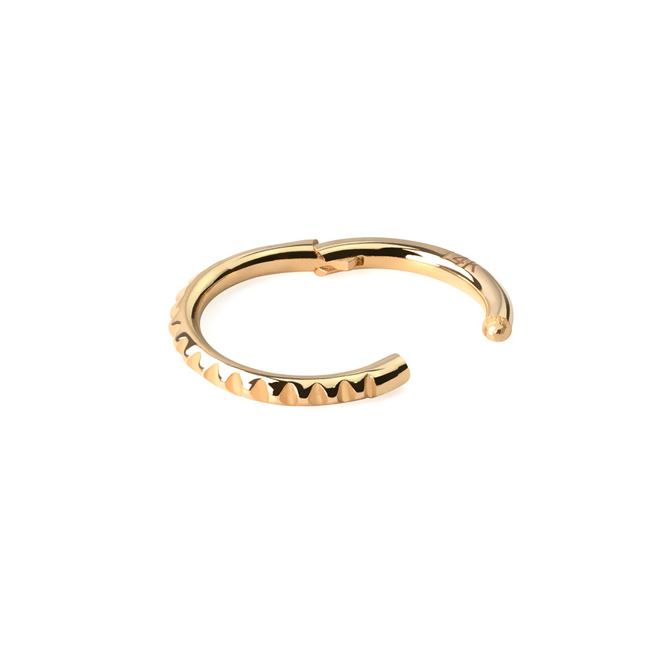 14 karaatin kullasta valmistetut lävistyskorut erottuvat aina muista ylellisyydellään ja vaikuttavalla laadullaan. Kun tähän materiaalin yhdistetään renkaan muotoilu, saat monipuolisen korun, joka tuottaa iloa pitkälle tulevaisuuteen. Lävistysrenkaita voidaan käyttää useisiin lävistyksiin, sinun tulee vain varmistaa koon sopivuus.