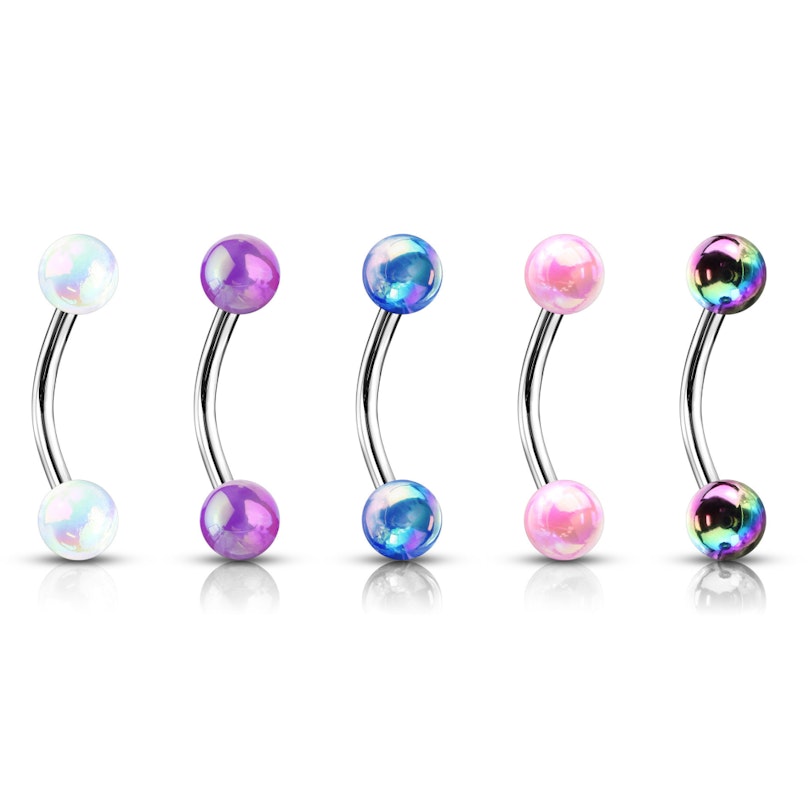 Koko koru on valmistettu kirurginteräksestä, myös pallot, jotka ovat sitten päällystetty väreillä. Sauvaa ei kuitenkaan päällystetä, vaan se tulee aina olemaan kirkas ja kiiltävä, mikä sopii hyvin metallisten pallojen kanssa. Korun paksuus on 1.2 mm, mikä tarkoittaa sitä, että voit käyttää tätä korua myös esimerkiksi korvalävistykseen tai kulmalävistykseen.