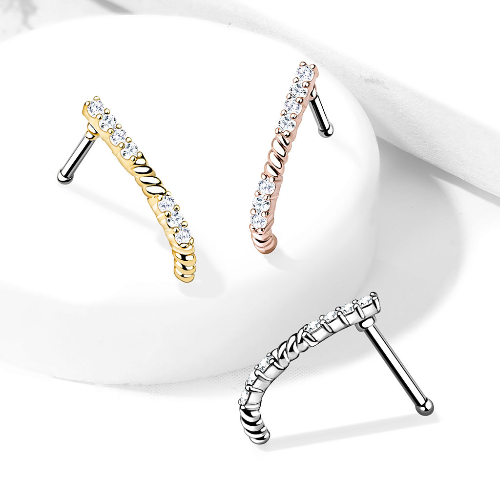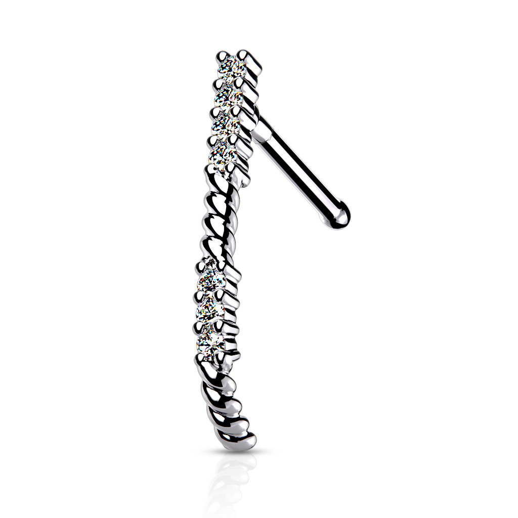 Tässä korussa yhdistyvät yksilöllisyys ja chic, kun korukivi-istutukset kipuavat näytävästi ylös sen vartta. Tämän ainutlaatuisesti muotoillun crawler-nenäkorun kokonaispituus on 13 mm. Valittavana on kolme eri väriä: kulta, ruusukulta ja hopea. Koko on standardinmukainen nenänsivulävistykselle, 0,8 mm:n paksuisella ja 6 mm:n pituisella tapilla.