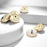Korun takaosa on valmistettu kirurginteräksestä ja patruuna on valmistettu messingistä ja se on päällystetty kultaisella päällysteellä, jotta se näyttäisi patruunalta. Koru on mitaltaan 7 mm.