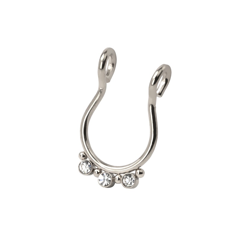 Septum-lävistys on yksi tämän hetken kuumimmista trendeistä, ja nyt sinun ei tarvitse jäädä hauskuudesta paitsi, vaikka et olisikaan valmis ottamaan tätä lävistystä! Tämä näppärä fake-rengas mahdollistaa septum-lookin ilman, että kukaan huomaa kyseessä olevan klipsi, sillä se kiinnittyy täsmälleen samaan kohtaan kuin aito septum-rengas.