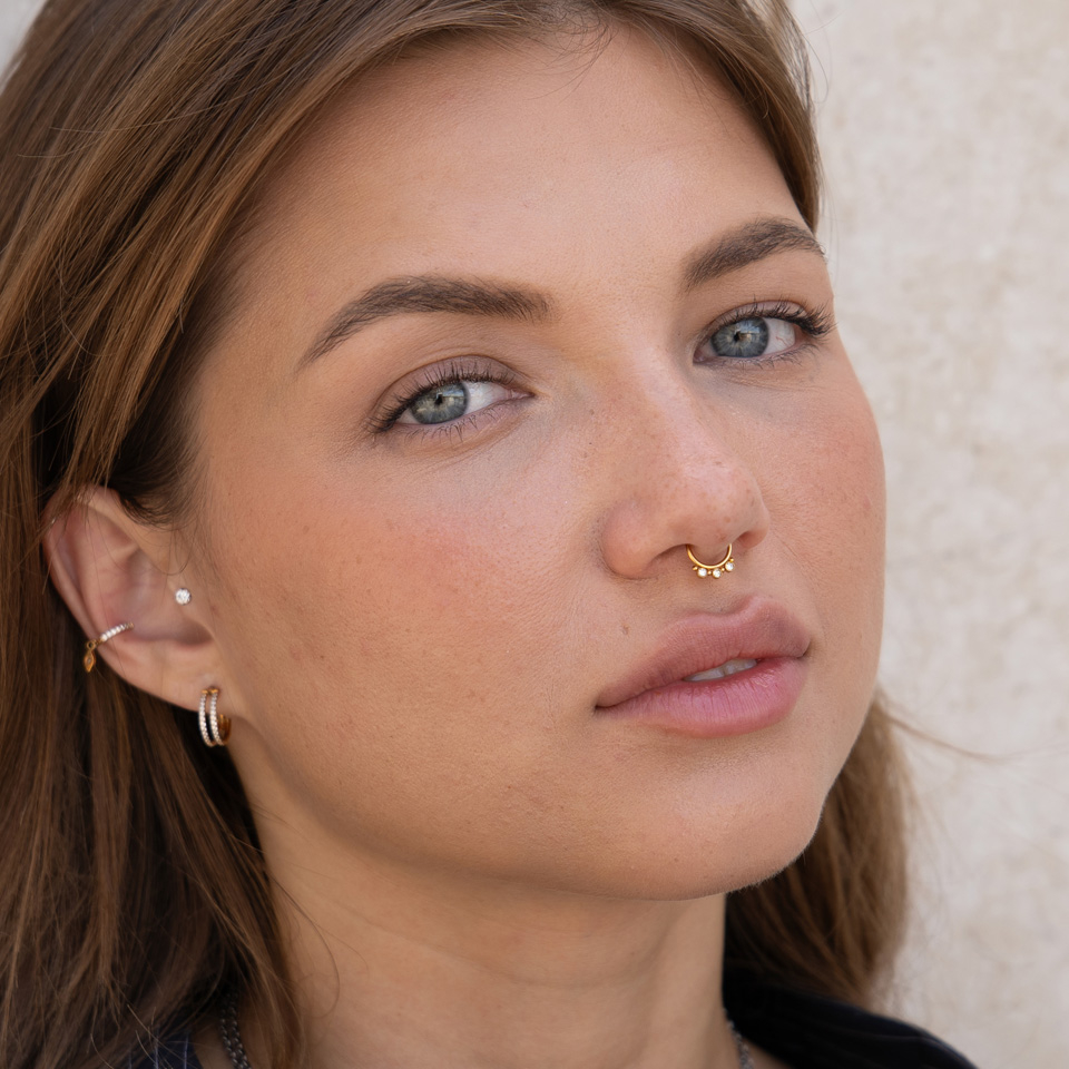 Septum-lävistys on yksi tämän hetken kuumimmista trendeistä, ja nyt sinun ei tarvitse jäädä hauskuudesta paitsi, vaikka et olisikaan valmis ottamaan tätä lävistystä! Tämä näppärä fake-rengas mahdollistaa septum-lookin ilman, että kukaan huomaa kyseessä olevan klipsi, sillä se kiinnittyy täsmälleen samaan kohtaan kuin aito septum-rengas.