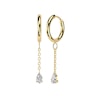 Molemmista renkaista roikkuu pisaranmuotoinen korukivi, joka roikkuu sirossa ketjussa, antaen ylimääräistä liikettä ja kimallusta aina kun käännät päätäsi. Kruunuistutus pitää kiven varmasti paikallaan ja saranallinen lukitusmekanismi tekee niistä erittäin helpon asetettavan.
