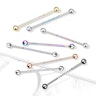 Jos etsit uutta korua industrial lävistykseesi, löydät varmasti suosikkisi meiltä. Barbell koostuu suorasta tapista, jonka molemmissa päässä on kuula. Barbellin keskelle on upotettu 8 pientä jalokiveä, joka on täydellinen yksityiskohta hillitylle korulle. Koru on valmistettu kirurginteräksestä, ja se on saatavilla monissa väreissä. Lisäksi kiiltävän mallin jalokivien väri on valittavissa.