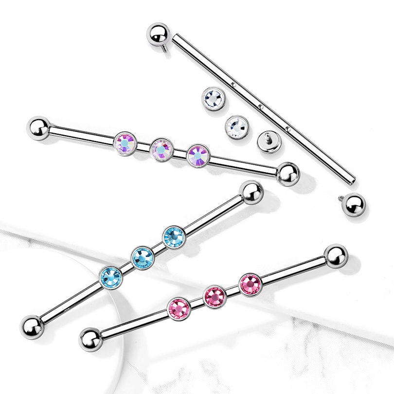 Nimi: Industrial barbelli kolmella sisäkierteisellä jalokivellä