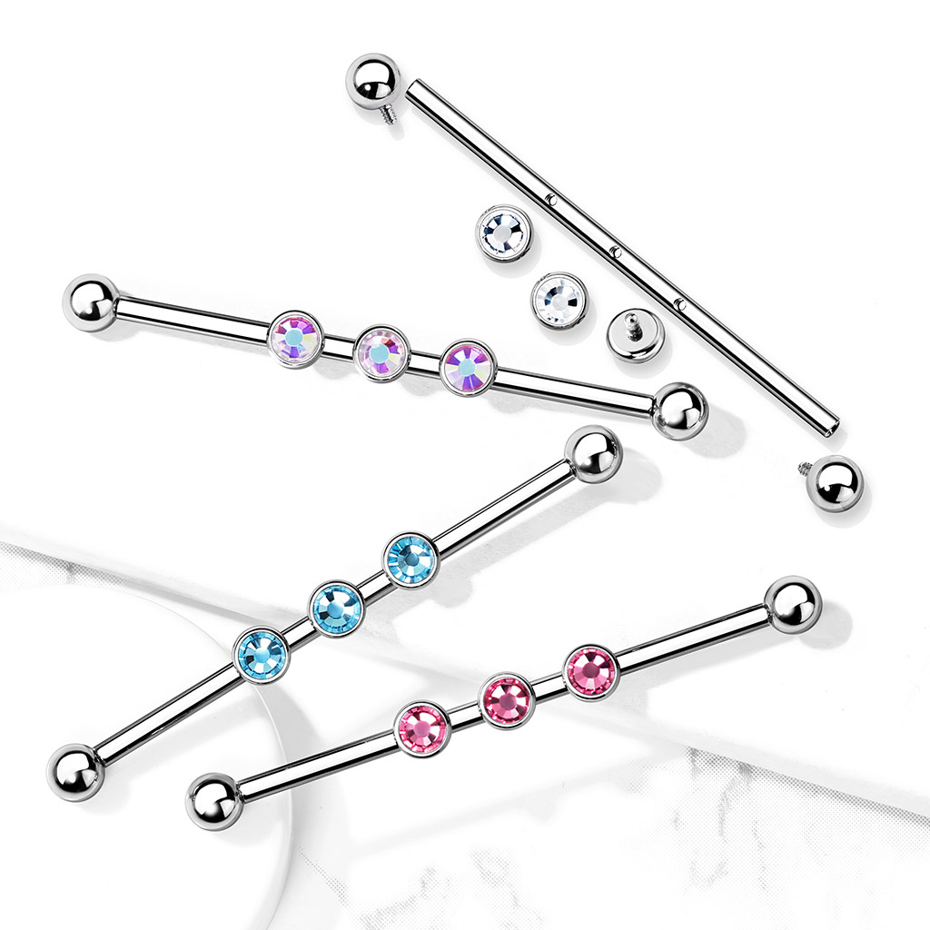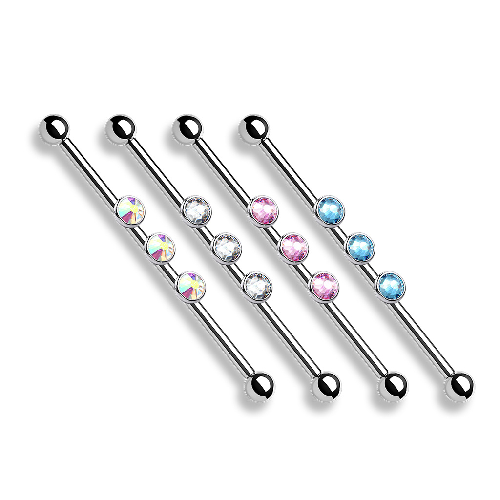 Nimi: Industrial barbelli kolmella sisäkierteisellä jalokivellä