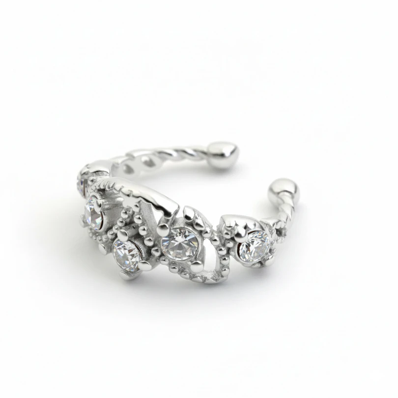 Nimi: Jalokivi- ja helmikoristeinen ear cuff-hopea