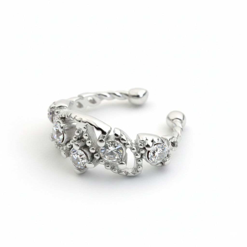 Nimi: Jalokivi- ja helmikoristeinen ear cuff-hopea