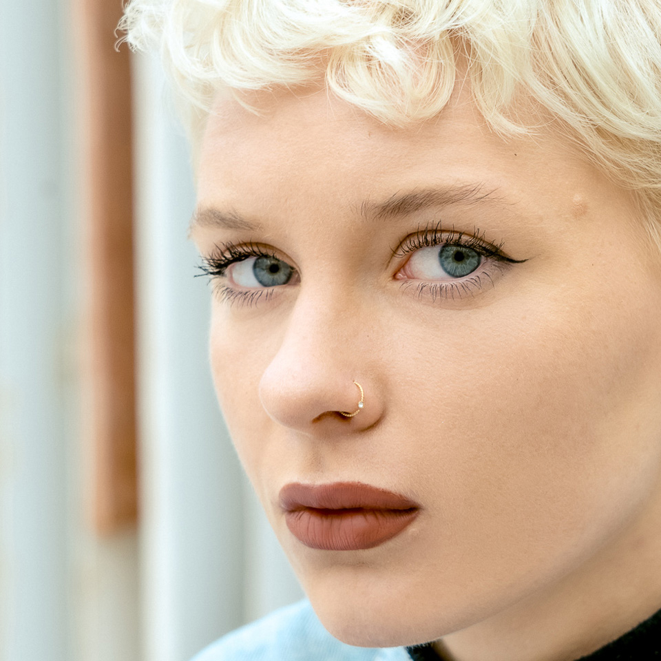 Nimi: Kierretty lävistysrengas jalokivellä