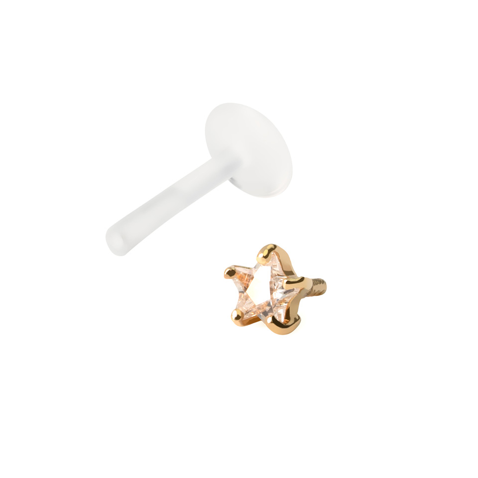 Nimi: Labret 14k kultaa tähtikivellä ja PTFE tapilla