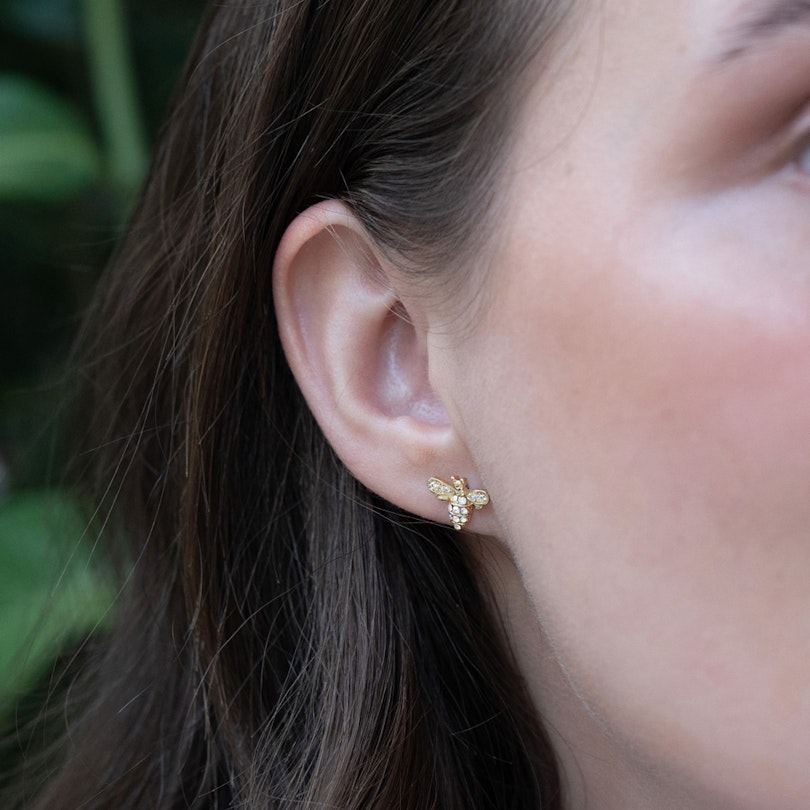 Jos haluat näyttävän lisän korvalävistyksiisi, olet tullut oikeaan paikkaan. Tämä mehiläinen lukuisilla kimaltelevilla kivillä on huomiota herättävä koru. Yksityiskohtaisen mehiläisen mitat ovat 11 x 10 mm, joten sen on hyvin huomattavissa.
