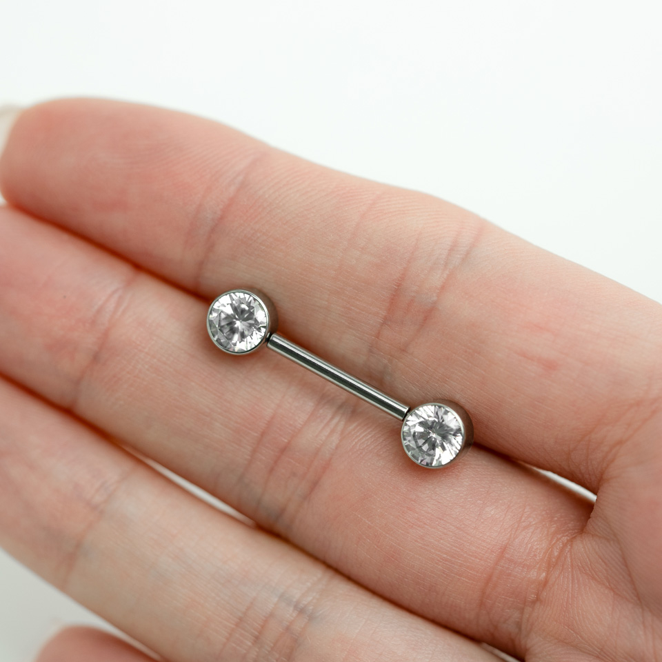 Nimi: Nännikoru barbell titaanista push-in jalokivi palloilla
