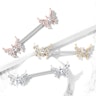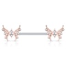 Jos etsit jotain erityisempää nännilävistykseesi, meillä on täydellinen koru tarjolla. Tämä koru koostuu 17 mm pitkästä barbellistä, jonka molempia päitä koristaa pieni perhonen upeilla siivillä. Perhosen keskiosassa on pieni markiisi jalokivi, joka sopii hyvin sen muotoon. Siivissä taas on pieniä kirkkaita kiviä, jotka sopivat yhteen suuremman keskikiven kanssa.