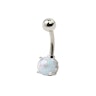Tätä kirurginteräksistä napakorua koristaa opaalikivi, joka on kruunuistutettu. Korussa on ulkoinen kierre - kiinnität sen lävistykseen ruuvaamalla ylemmän pallon paikalleen. Saatavilla kultaisena tai hopeisena, tämä koru antaa uuden elämän napalävistykseesi.