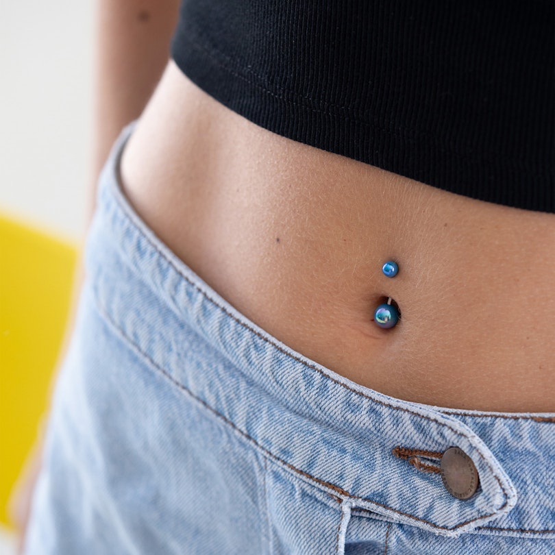 Yksinkertainen napakoru suurella persoonallisuudella. Kyseessä on tavallinen kaareva barbelli, mutta sen kummassakin päässä on näyttävä kirurginteräspallo, joka on pinnoitettu metallisilla efektiväreillä.