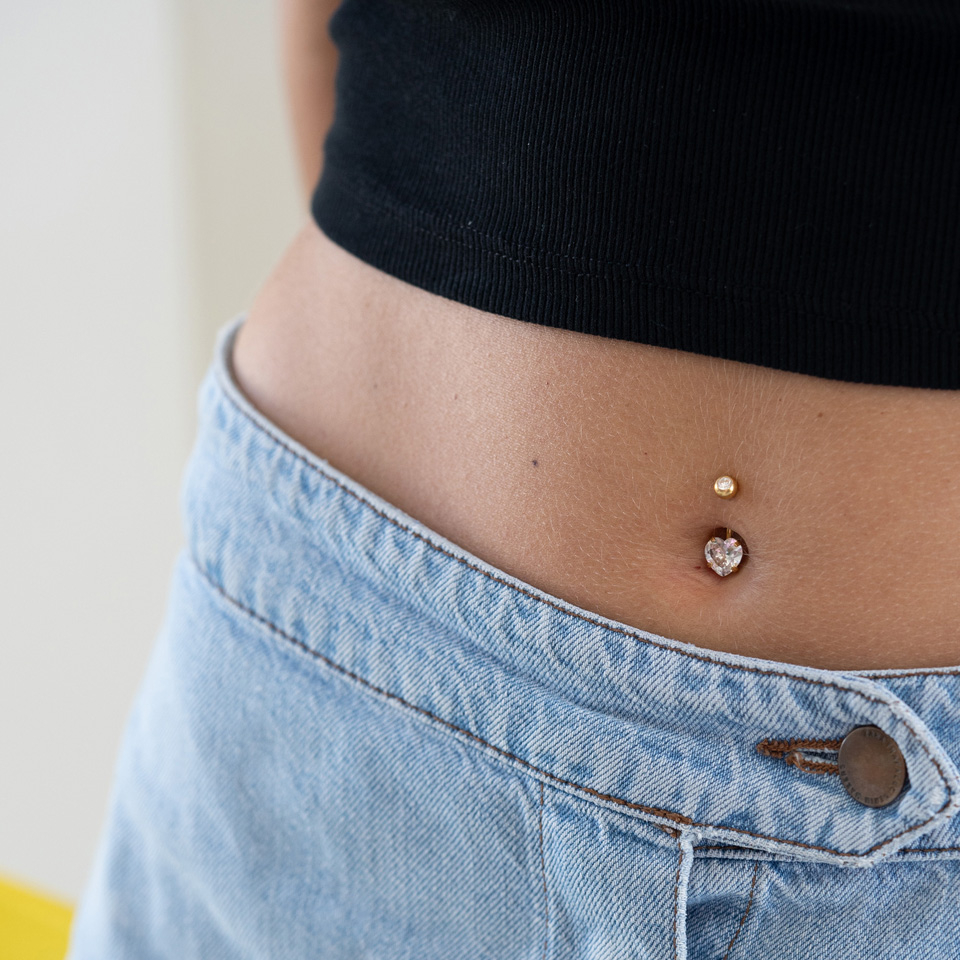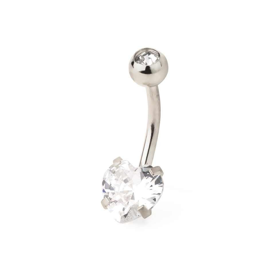 Suosittu sydämen muotoinen napakoru, jossa sydämen muodostaa hiottu zirkonia kivi. Korun yläosan palloon on myös upotettu kirkas kivi, joka täydentää korun alaosaa kauniisti. Korun materiaali on kirurginteräs, jonka voit valita eri väreissä. Lukuunottamatta hopeanväristä korua, joka saa värinsä materiaalistaan, korujen värit on muodostettu kestävällä PVD-pinnoitteella.