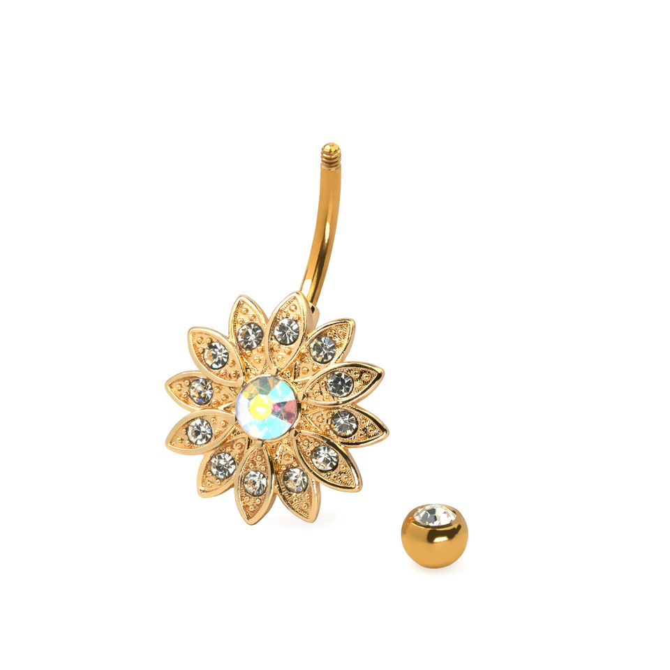 Identtinen kuvan kanssa. Erittäin kaunis! Täyttää käytännössä koko napanuoran. Ainoa haittapuoli on, että aluksi kukan terälehdet pistelevät hieman, mutta siihen tottuu melko nopeasti. Ostaisin sen uudelleen!