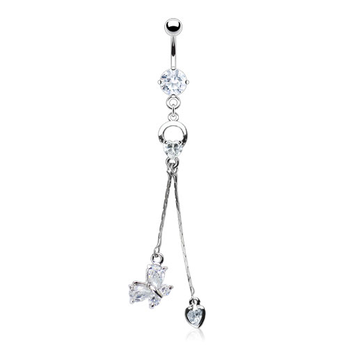 En ole koskaan omistanut roikkuvaa napapiercingiä, mutta tämä miellytti minua todella. Se on tarpeeksi pitkä, ja perhonen ja sydän roikkuvat jo housujeni edessä, mutta onneksi en ole vielä jäänyt mihinkään kiinni. Se ei häiritse, vaikka ketjut heiluvat melko paljon. Se näyttää myös hyvältä pidemmän paidan kanssa.