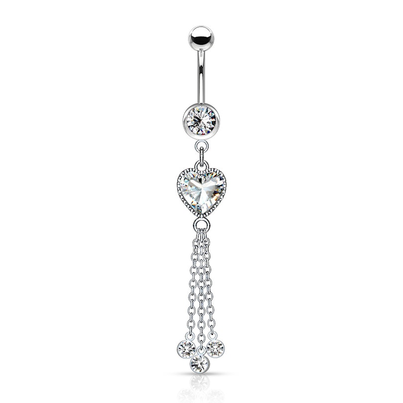Tämä tyylikäs napakoru on koristeltu monilla korukivillä. Kaareva barbelli on valmistettu kirurginteräksestä ja riipus messingistä, joka on pinnoitettu niin, että korun väri on yhtenäinen.