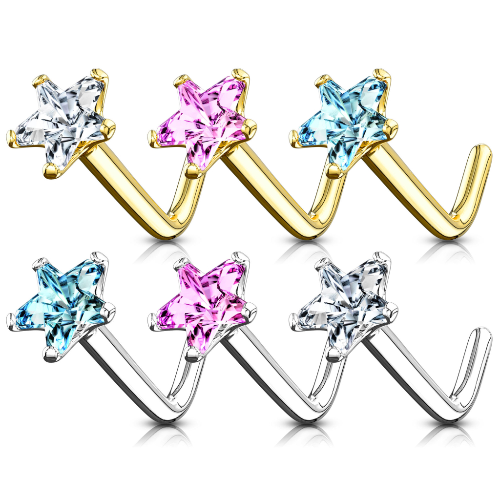 Nenäkoru 14 karaatin kullasta tähti jalokivellä