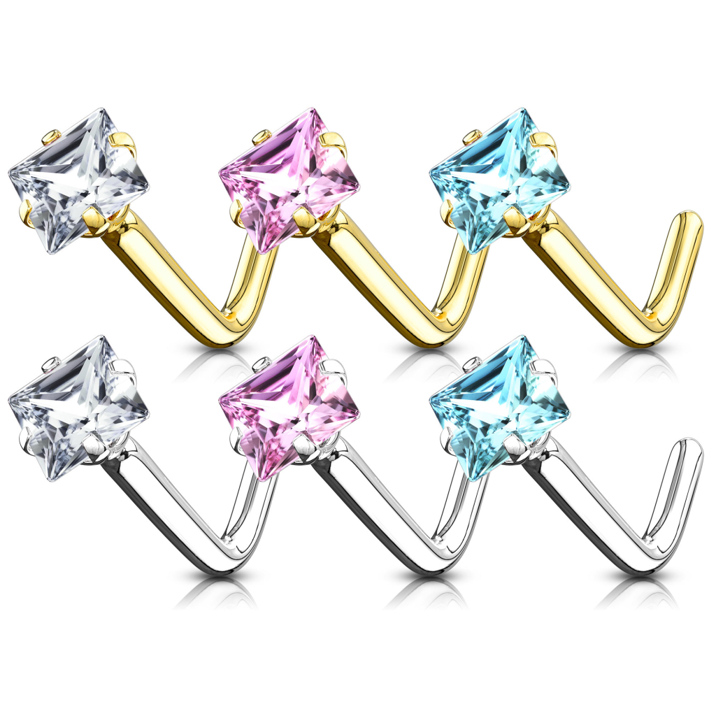 Nimi: Nenäkoru 14k kullasta nelikulmaisella jalokivellä