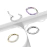 Tämä upea rengas on valmistettu G23-luokan titaanista, joka on turvallisin materiaali lävistyksiin. Joskus titaanikorut voivat olla yksitoikkoisia, mutta ei tämä malli. Korun ovaali muoto itsessään on jo huomiota herättävä. Rivi kimaltavia korukiviä tekee kokonaisuudesta tyrmäävän. Rengas ei ole vain soma, vaan siinä on myös käytännöllinen puoli; saranallinen lukitusmekanismi on tekee kaikesta helpompaa. Avaat renkaan vain vetämällä saranallista segmenttiä ylöspäin ja napsautat sen takaisin alas, kun olet asettanut korun lävistykseesi.