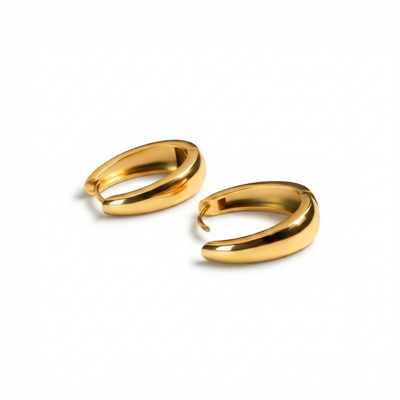 Etsitkö vannekoruja, jotka erottuvat? Tässä olisi ovaali vannekorupari siihen tarpeeseen. Tehty vahvasta kirurginteräksestä, voit valita korut klassisella hopea- tai kultapäällysteellä. Niiden ainutlaatuinen ovaalimuotoilu on hienovaraisesti leveämpi alaosasta, tuoden raikasta twistiä tyylillesi. Lisäksi sen helppo saranallinen lukitusmekanismi tekee koruista helpon pidettävän. Myydään parina, jotta voit heti tuplata korviesi tyylitason.