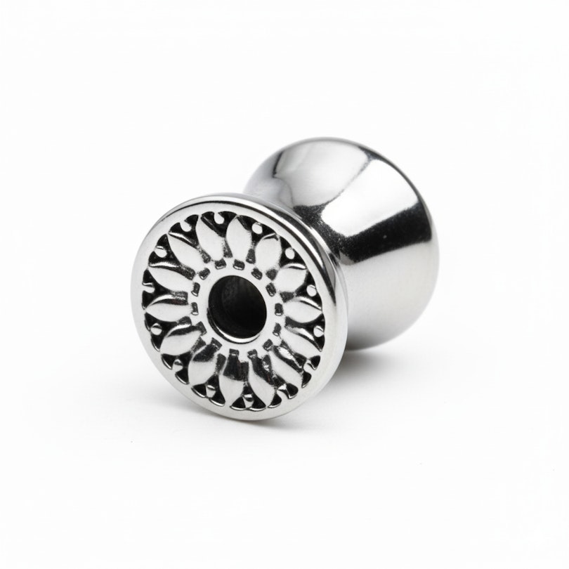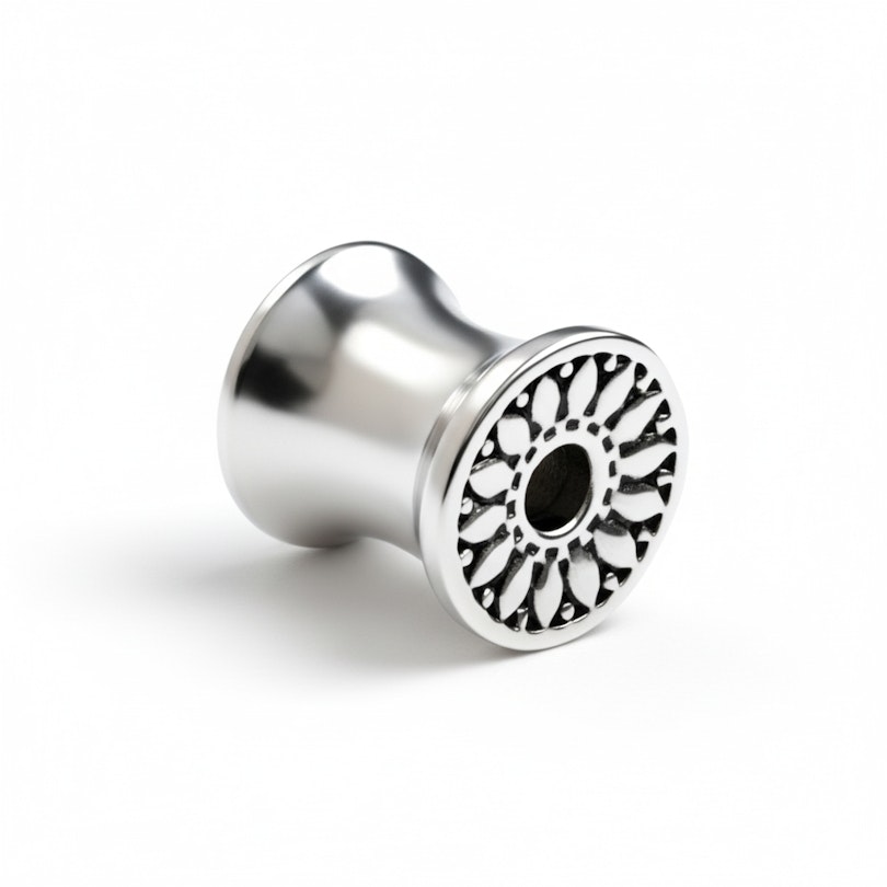 Päivänkakkara tunneli on yksiosainen koru, joka on suunniteltu pitämään homma simppelinä ja tyylikkäänä. Etuosassa on terälehtimäinen koristerengas, antaen venytetyille korvillesi pehmeän ja teksturoidun reunan, joka erottuu vaivattomasti.