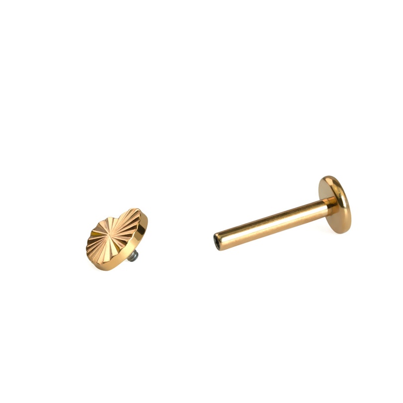 Kestävä ja allergisoimaton labret on valmistettu implanttitason titaanista, joten se sopii erinomaisesti herkälle iholle. Sisäkierteinen lukitusmekanismi ja litteä takaosa tekevät sen paikalleen asettamisesta helppoa. Saatavilla on 6 tai 8 mm:n pituinen tappi, joten tämä monipuolinen koru istuu vaivattomasti erilaisiin korva- tai huulilävistyksiin.