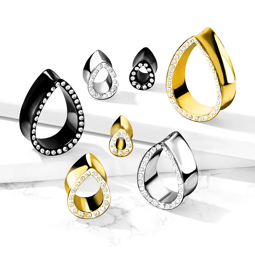 Useimmat tunnelit ovat pyöreitä. Tämä tunneli tulee kuitenkin pisaran muodossa. Tarjolla on kolme kaunista sävyä, josta on nähtävissä tuotekuvasta. Kaikkia malleja koristaa kimaltava jalokivireunus. Luonnollisesti suuremmissa malleissa on useampia jalokiviä sen reunuksessa.