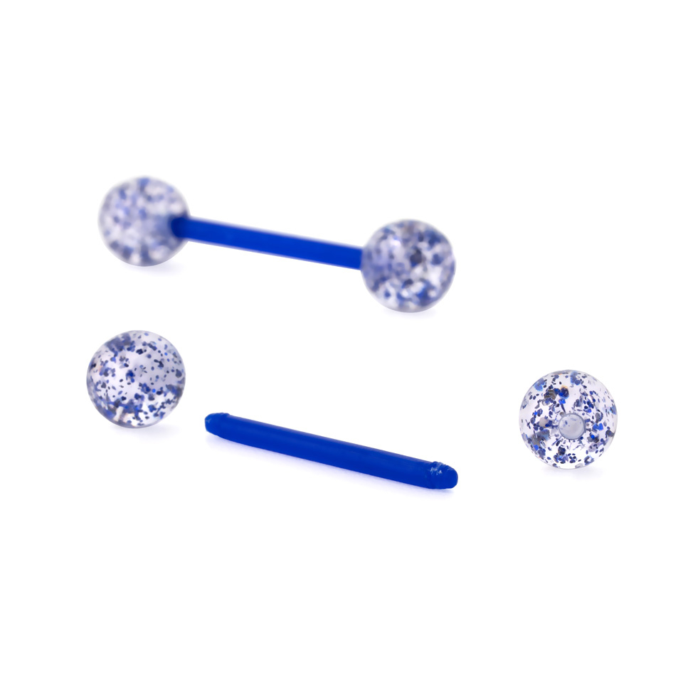 Mielenkiintoisen tästä tekee se, että voit tarvittaessa lyhentää tappia, sillä se on valmistettu pehmeästä biomuovista. Leikkaa barbelli saksilla haluttuun pituuteen ja käytä metallista palloa uusien kierteiden luomiseen. Voit siten saada kielilävistykseesi täydellisesti sopivan barbellin, joka on vieläpä näyttää hyvältä.