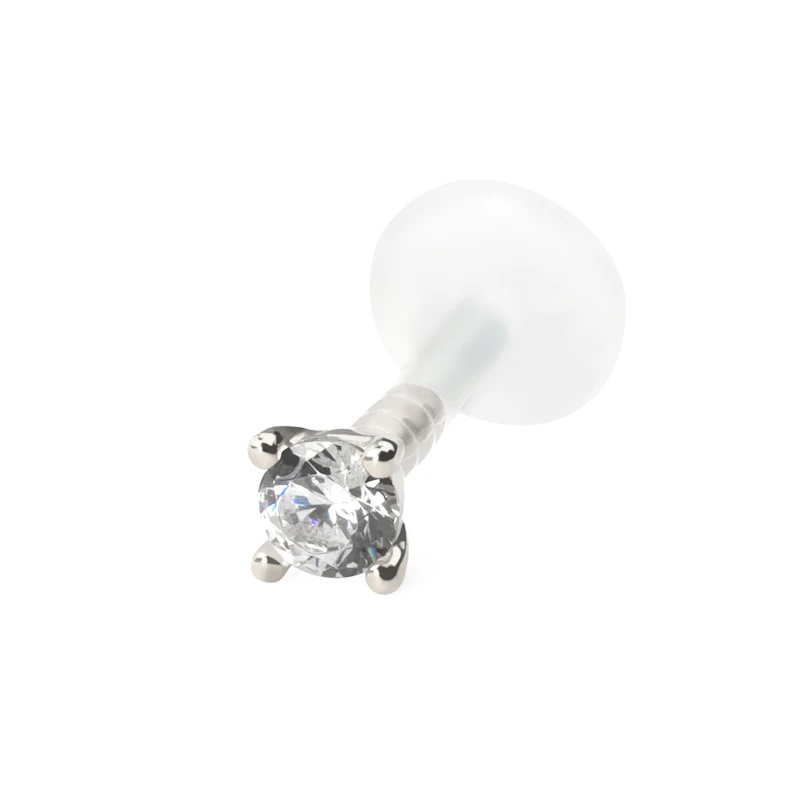 Nimi: PTFE-labret 14k kultaisella korukivipallolla-14K valkokulta / PTFE