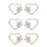 Koru on valmistettu messingistä, joka on muotoiltu sydämeksi ja siihen on jätetty pieni rako, että korun saa myös korvaan. Sydämen sisämitat ovat 8mm leveä ja 8mm korkea. Sydänrengas on esimerkiksi päällystetty 14 karaatin kullalla, jos valitset kultamallin. Kukan kivet ovat kuitenkin aina värittömät. Jokaiselle varmasti löytyy valikoimastamme sopiva koru.