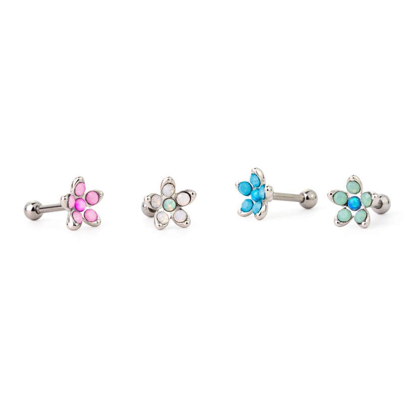 Itse lävistyskoru on valmistettu kirurginteräksestä, jonka kukkaosa on valmistettu taas messingistä. Kukka on päällystetty rodiumilla. Korun kruunaa viisi upeaa opaliittikiveä reunoilla sekä yksi upea opaalikivi keskellä korua.