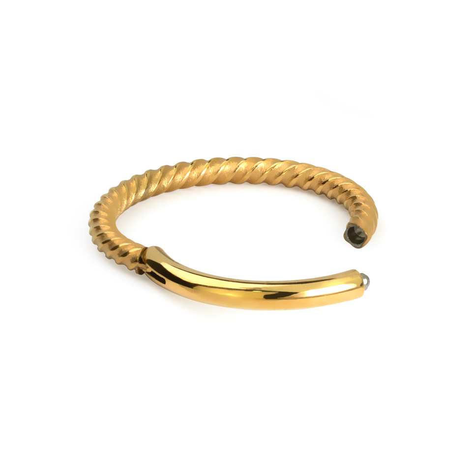 Minulla on se kullassa, halkaisija 8 mm ja tangon paksuus 1 mm. Super tyylikäs lävistys, laatu on hyvä ja hinta on perusteltua. Olen fani
