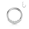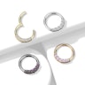 Rengas on saatavilla neljässä eri värissä kestävällä PVD-pinnoitteella, joista löydät varmasti tyyliisi sopivan vaihtoehdon. Valitsetko ikityylikkään kullan, ylellisen ruusukullan, vaikuttavan mustan vai hienostuneen hopean? Jokainen vaihtoehto on samankokoinen ja -mallinen, mutta huomaa eriväriset zirkoniakivet selatessasi renkaan värivaihtoehtoja. Nämä kimaltavat korukivet suuntautuvat eteenpäin, joten rengas sopii hyvin septum-lävistykseen ja tiettyihin korvalävistyksiin, kuten daith tai tragus.