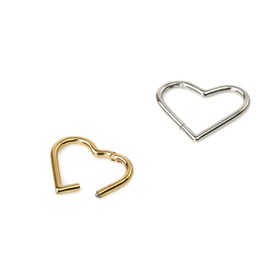 Tämä saranallinen rengas on taottu yhteen suosikkimuodoistamme: sydän. Jos etsit lävistysrengasta, joka on samaan aikaan elegantti ja herttainen, olet oikeilla jäljillä.