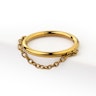 Tässä omalaatuisessa renkaassa on lisänä molemmista päistä renkaan sivuille kiinnitetty ketjuyksityiskohta, joka laskeutuu renkaan puolivälistä, hieman renkaan alaosan alapuolelle. Saatavilla kulta- tai hopeapinnoitteella. Sopii täydellisesti toisten korujen lisäksi tuomaan raikkaan tuulahduksen kokonaistyyliisi. Titaanista tehty koru on kestävä ja allergisoimaton, ja saranallinen lukitusmekanismi tekee korun asettamisesta ja poistamisesta helppoa.
