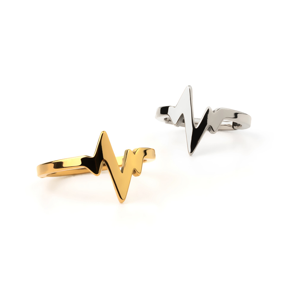Tämä tyylikäs kirurginteräksinen segmenttirengas kuvaa sydämen sykettä. Monipuolinen koru on saatavilla kahdella eri halkaisijalla: 8 mm tai 10 mm. Näin sen saa sopiman mukavasti mihin kehonosaan haluatkaan sen asettaa.