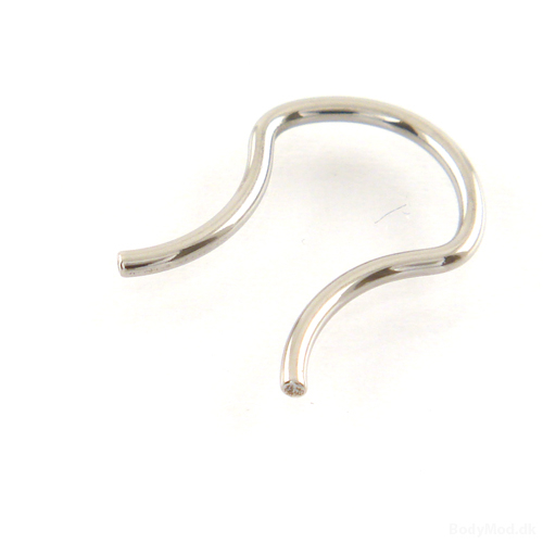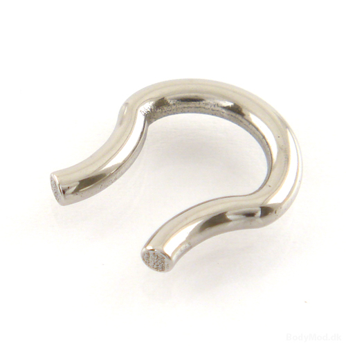 Asetus (septum nenäpiercing) onnistuu ilman ongelmia. Vaikka minulla on pieni nenä, voin helposti kääntää retainerin ylös. Vinkki: Vedä nenää hieman eteenpäin. Miinuspuoli: se istuu löysästi ja siksi hieman vinossa nenässä, päät osoittavat kohti poskionteloita. Se on arjessani liian vaarallista, jos satun iskemään nenäni. Käytän nyt pientä akryyliretainia täältä kaupasta, se pitää oikein hyvin ja se on oikeasti näkymätön!
