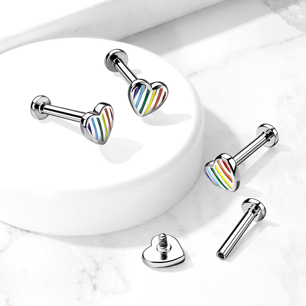 Sisäkierteinen labret sateenkaarisydämellä