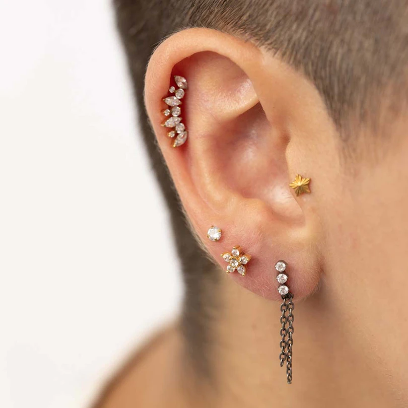 Sijoitus: Tragus, Spiderbite, Snakebite, Medusa, Madonna, Lower labret, Korvalehti, Helix, Conch, Anti-helix, Angelbite