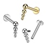 Tätä tyylikästä labrettia koristaa yksinkertaisen täydellinen ja eleganssia huokuva pallomuodostelma. Koru on saatavilla kultaisena tai hopeisena. Hopeinen koru on pinnoitettu platinalla ja kultainen 14K kullalla.