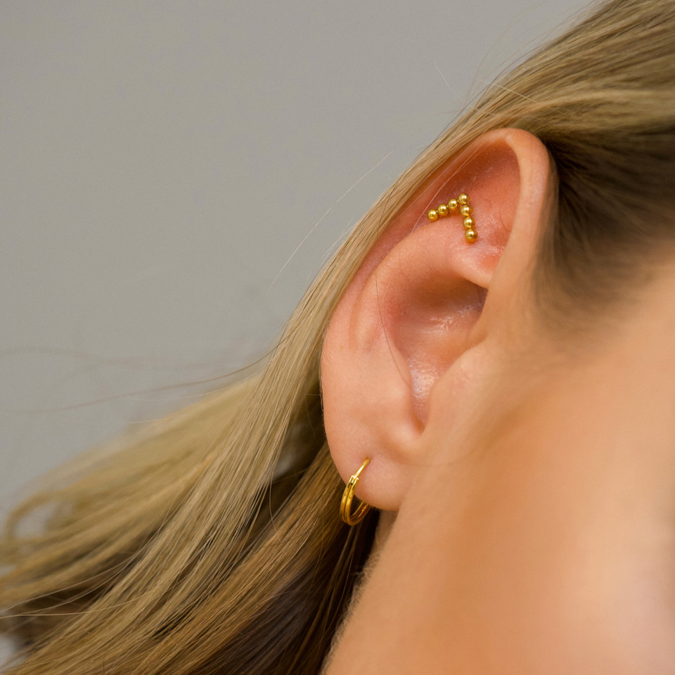Standardinmukainen 8 mm:n tappi on saatavilla 1 tai 1,2 mm:n paksuudella, mikä tekee korusta sopivan korvalehti- tai helix-lävistykseen.