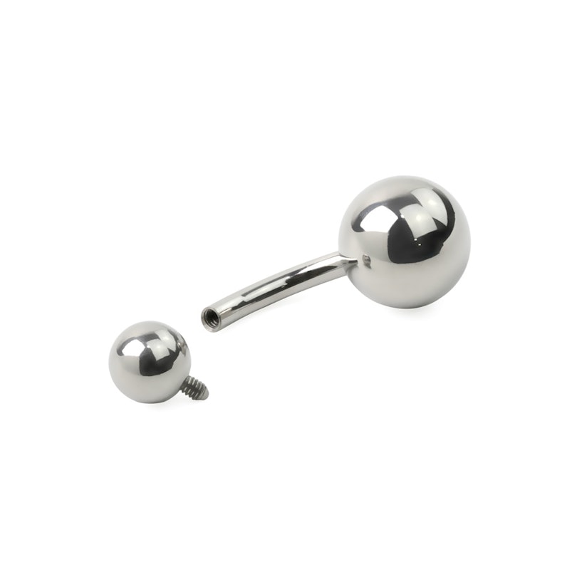 Tämä titaanipäällystetty kaareva barbelli tai bananabelli on ihanteellinen uusiin napalävistyksiin tai jopa aloituskoruksi. Ensinnäkin G23-titaani on turvallinen kaikille ihotyypeille eikä allergisoi, joten ihoärsytystä ei tarvitse pelätä. Toiseksi korun lukitusmekanismi toimii sisäkierteillä, joka on ulkokierteistä mallia huomattavasti hellävaraisempi vaihtoehto.