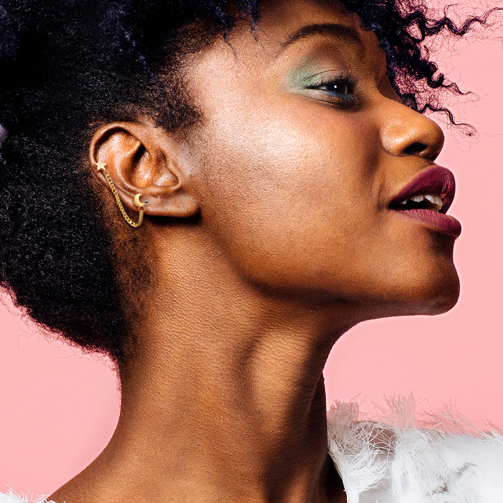 Jos sinulla on kaksi lävistystä korvassasi, voit hankkia tämän upean korun yhdistämään ne. Huomioi kuitenkin korun koon sopivuus lävistyksiisi. Barbellejä yhdistävän ketjun pituus on 4 cm. Molemmat barbellit ovat 1,2 mm paksuja ja 6 mm pitkiä. Niiden takaosassa on 4 mm lukituspallo. Etuosissa on koristeena tähti ja kuu.