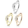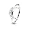 Kirurginteräksisen taivutettavan renkaan kuunsirppiä koristaa kolme väritöntä korukiveä, joita ympäröivät pienet nastakoristeet.