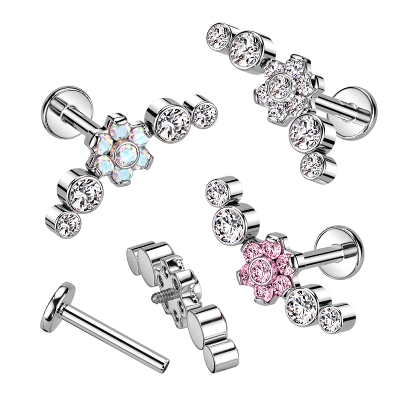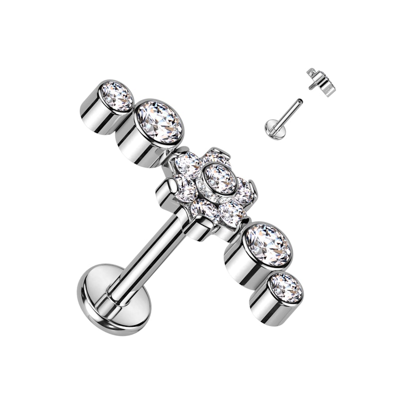Tämän labretin valmistusmateriaali on kestävin ja lävistyskoruille suositeltavin titaani. Sisäkierteinen lukitusmekanismi tarkoittaa sitä, että koristeosassa on kierteinen nuppi, joka ruuvataan tapin sisään. Näin labretin asettaminen ei raavi lävistyksen ihoa.