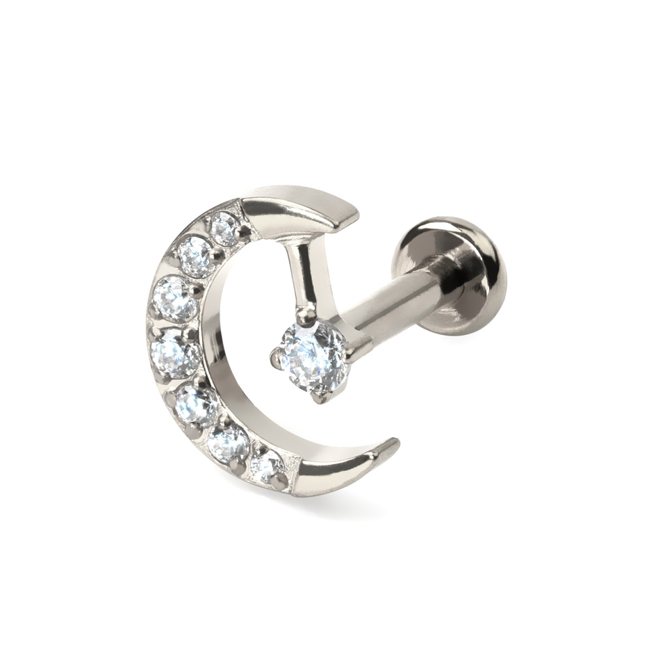 Tähän soman labretin koristeena on pienen pienillä CZ-kivillä koristeltu kuunsirppi ja yksi suurempikokoinen CZ-kivi, joka on kiinnitetty kuunsirpin yläosaan.