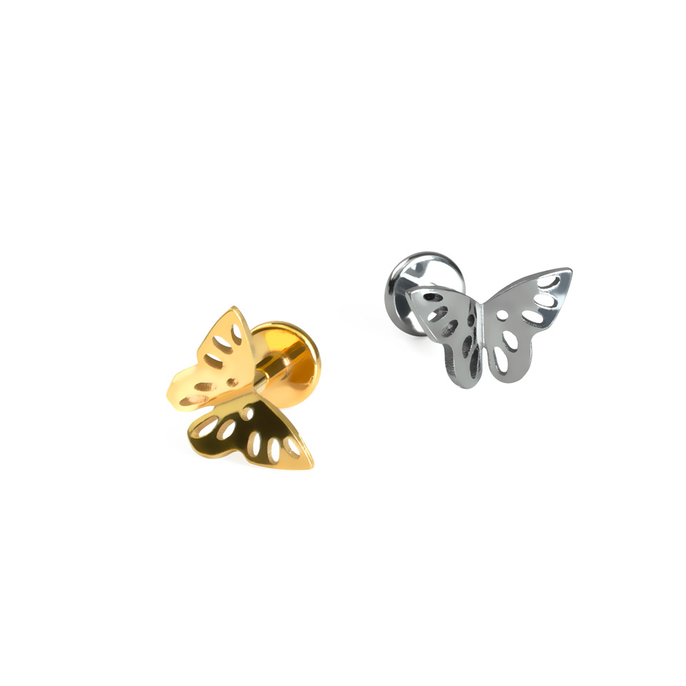 Sisäkierteinen lukitusmekanismi tarkoittaa, että vain korun sileä osa koskee lävistyksen ihoa. Koristeosa ruuvataan helposti ja mukavasti paikalleen, kun tappi on jo paikallaan.